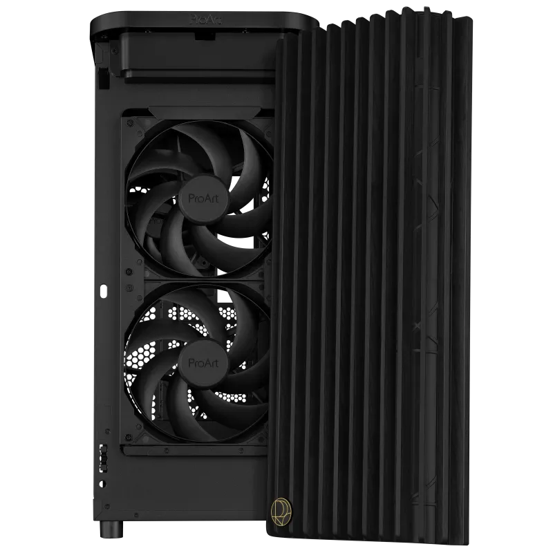 The ProArt PA401 Wood Edition showcases a wooden front panel that creates a distinctive, elegant style while promoting sustainability. The wood used is certified by the Forest Stewardship Council (FSC), and is finished using a six-stage process. The case also boasts optimal built-in cooling, with two 160mm front fans and one 120mm rear fan, along with an integrated fan hub, enabling optimal airflow.