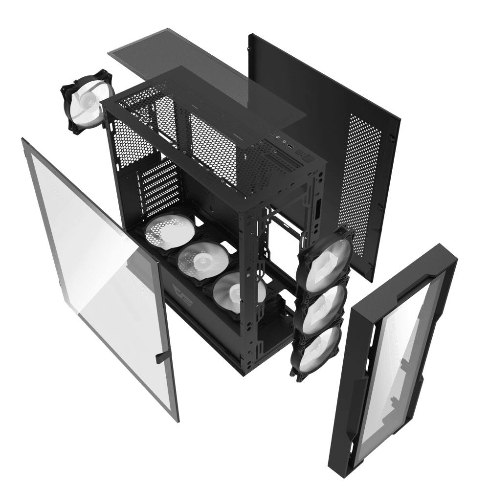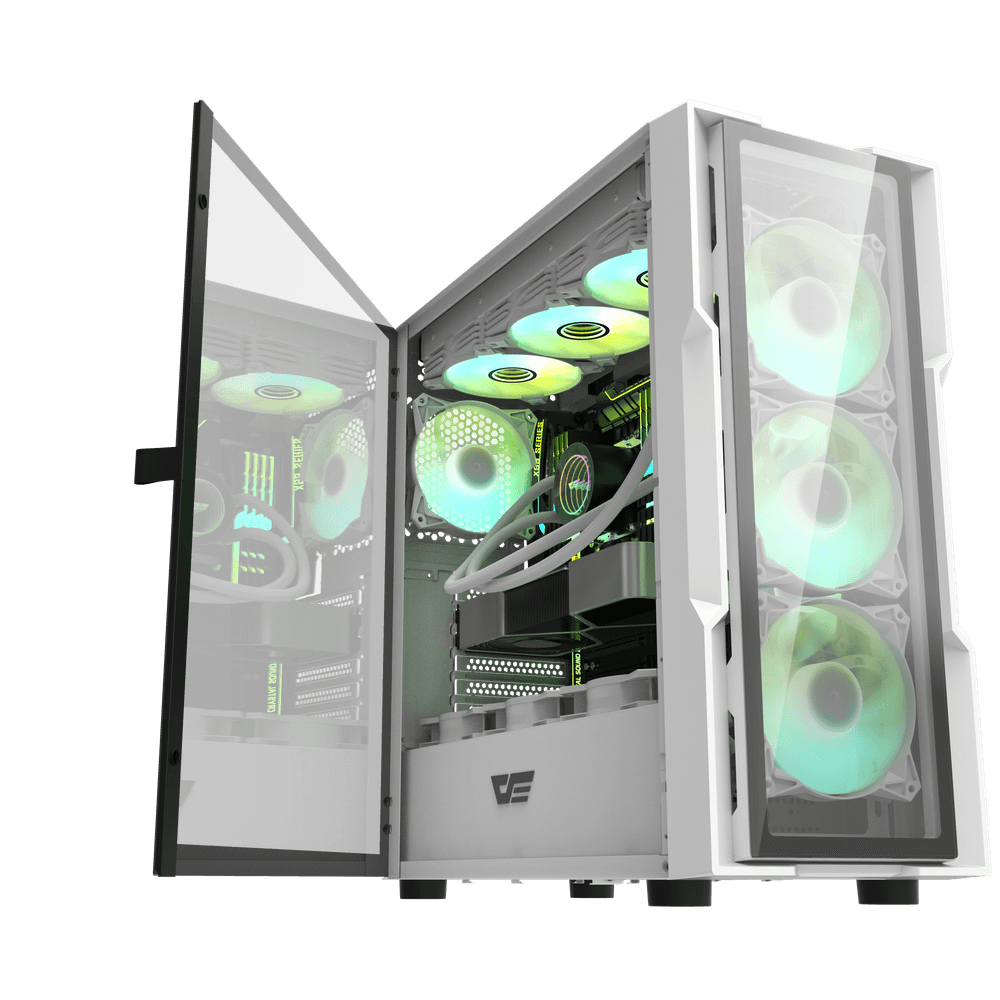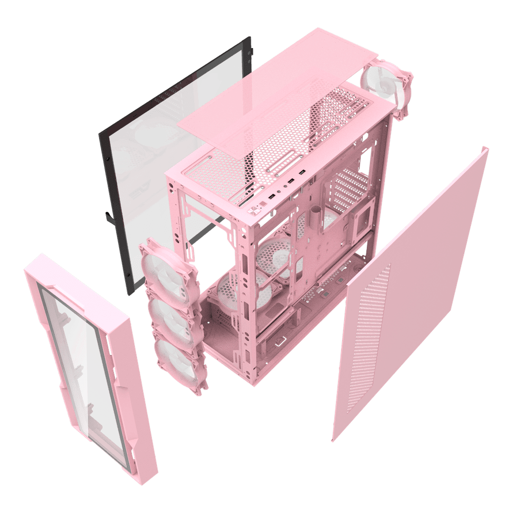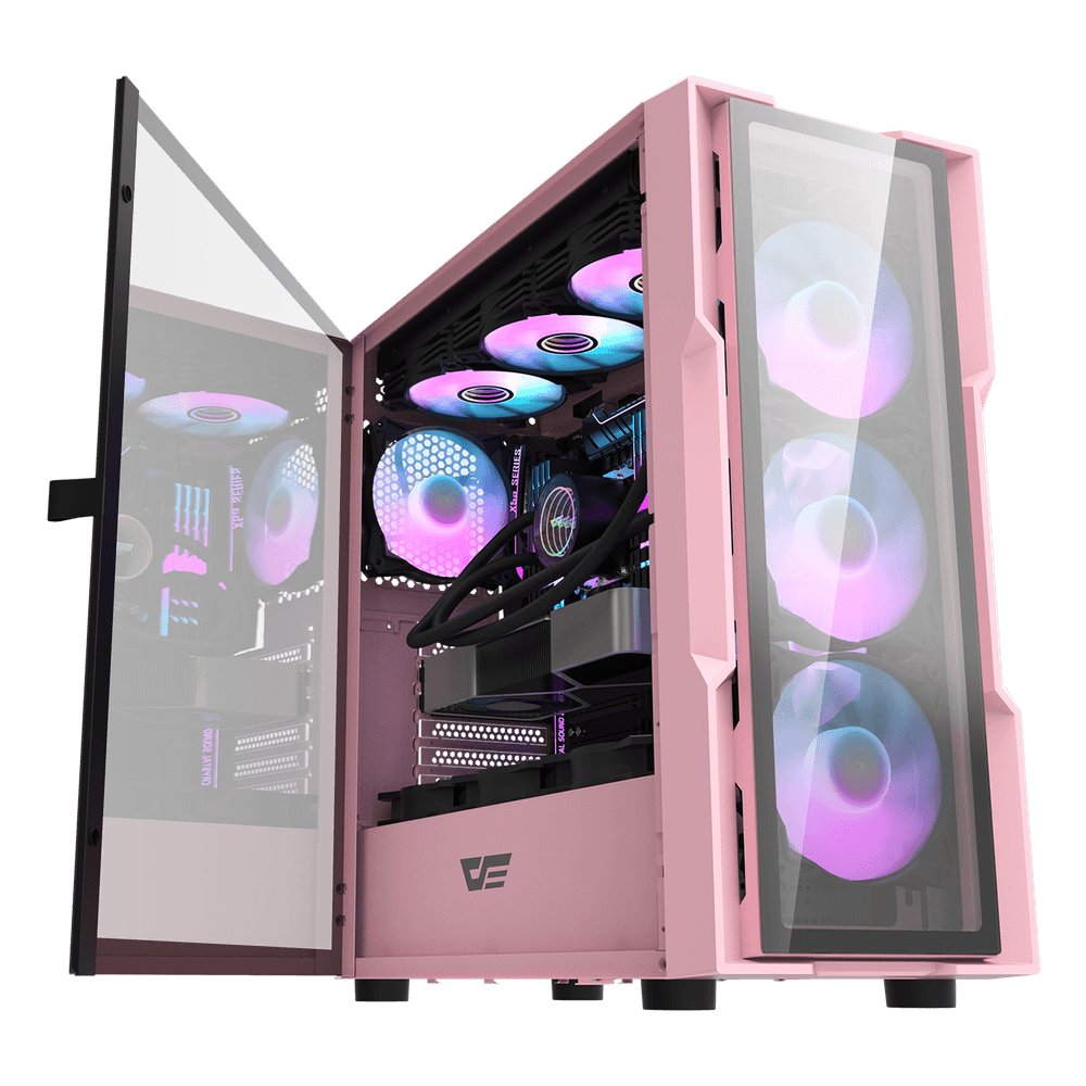 DarkFlash DK431 Glass ARGB E-ATX Gaming Case – Black/White/Pink (4x Fans)