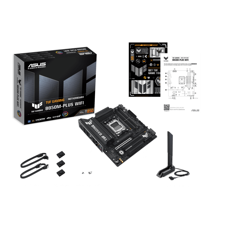 Accessories | Cables: 2 x SATA 6Gb/s Misc: 1 x ASUS WiFi Q-Antenna, 1 x TUF sticker, 2 x M.2 rubber packages, 1 x M.2 screw Documentation: Quick start guide |