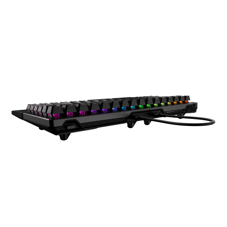 | Contents | 1 x ROG Falcata 2 x Wrist Rest 8 x Keyboard Feet 1 x Keycap Puller 1 x USB Cable 2 x Link Cable 6 x Screws 1 x Extender 1 x USB-C to A Adapter 1 x Allen Wrench 1 x ROG Sticker 1 x Ctrl Keycap 1 x Quick Start Guide 1 x Warranty Booklet |
