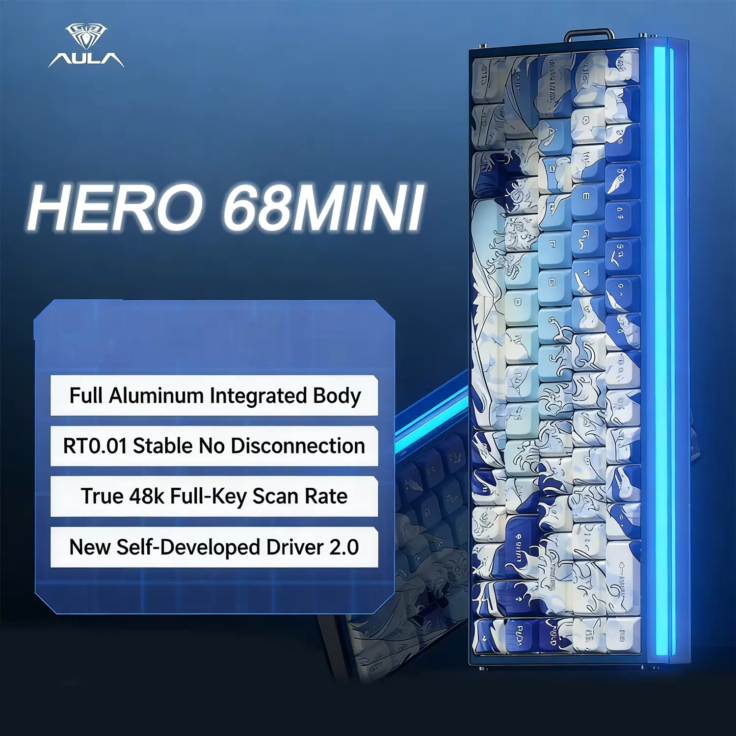 Aula Hero 68 Mini Wired RGB Low Profile Magnetic Switches Keyboard – Dream Butterfly Purple/Floating White/Ice Light Blue/Rainbow Candy/Ukiyo Blue (Tea Emperor Mini Low Switch/Powder Emperor Mini Low Switch)