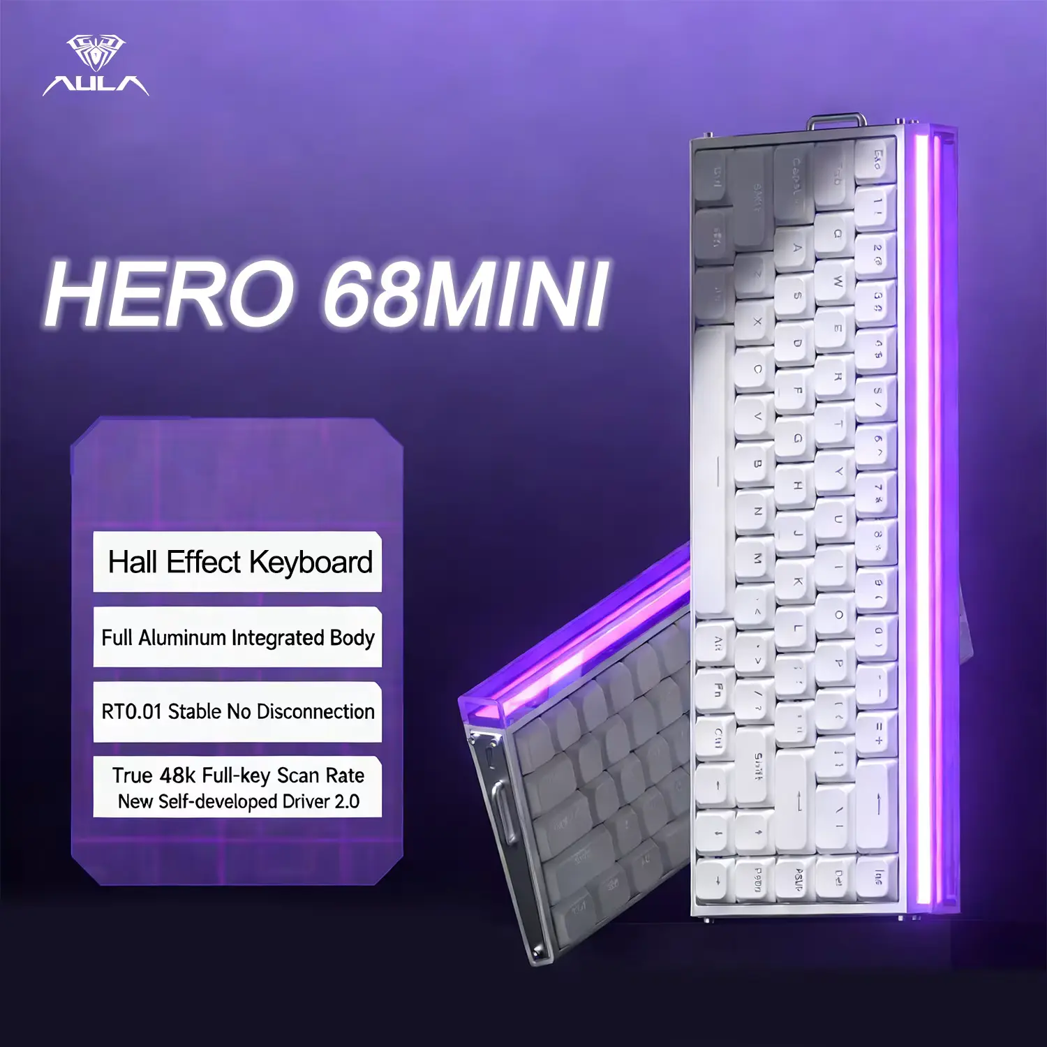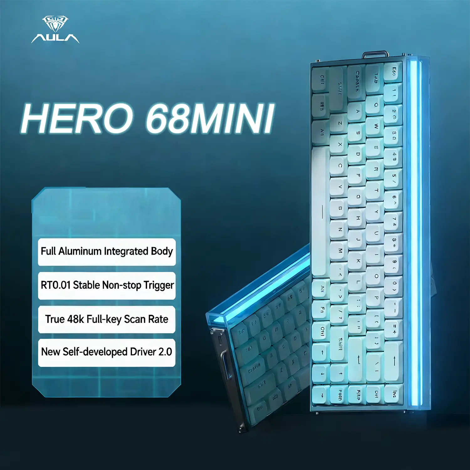 Experience ultimate precision and performance with the Aula HERO 68Mini, a full aluminum, mini-sized mechanical keyboard designed for gamers and high-performance desktop users. With cutting-edge magnetic switches, ultra-low latency, and a compact 68-key layout, the Aula HERO 68Mini combines speed, stability, and style in one sleek package.