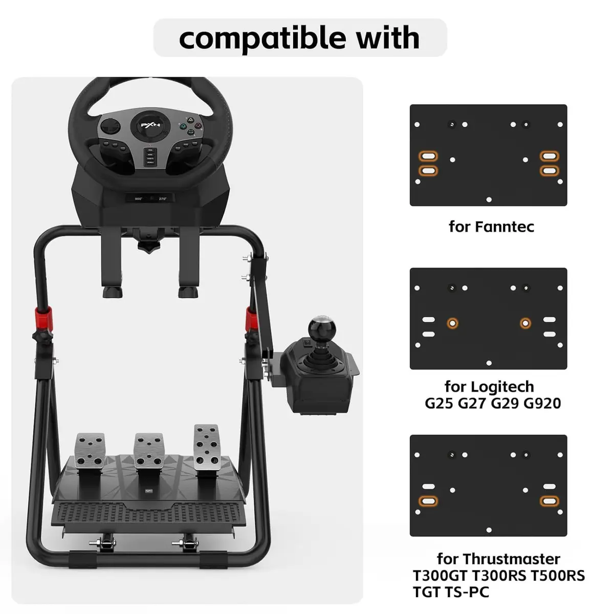 PXN A9 steering wheel stand is compatible with Logitech G25/G27/G29/G920/for Thrustmaster GT500/T300GT/T300RS/T500RS/TGT/TS-PC/PXN V9 Support Fanntec folding stand, suitable for most steering wheels Racing wheel stand in the steering wheel. (Steering Wheel NOT Included)