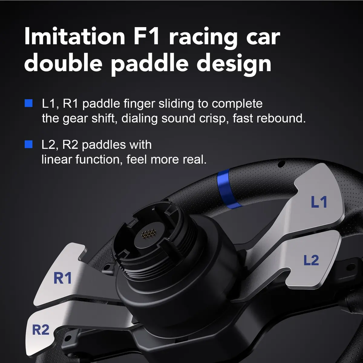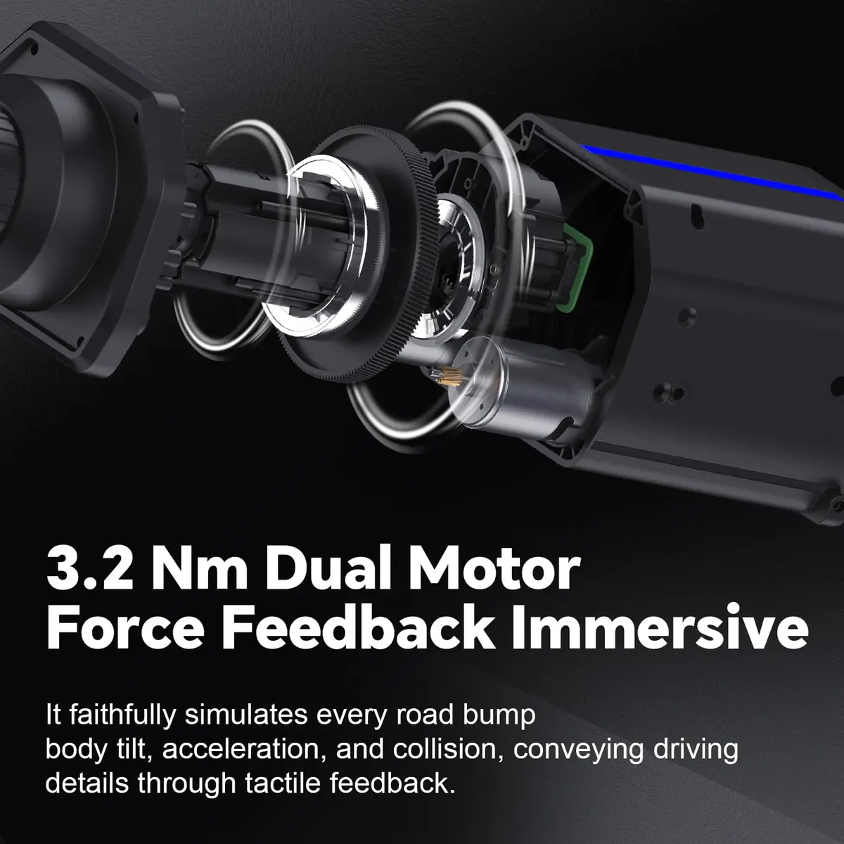 PXN V99 Real Force Feedback Gaming Steering Wheel with Adjustable Hall-Effect Linear Padels and Shifter – Black
