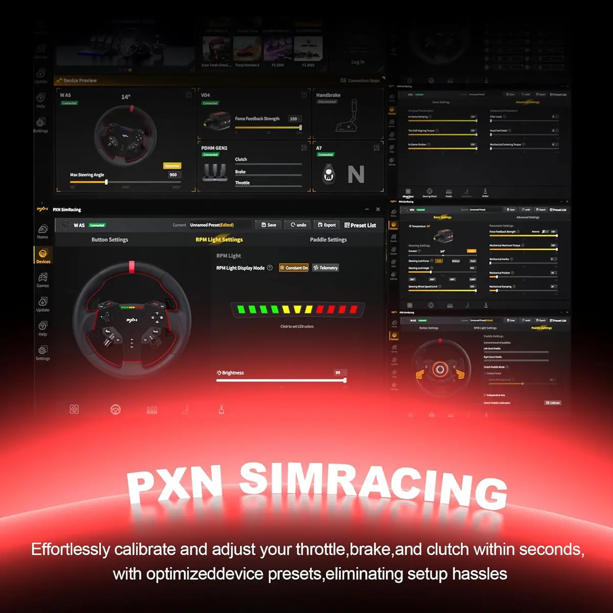 PXN VD4 Direct Drive Servo Bundle – Motor Base, Steering Wheel, Padels, Desk Mounting Clamp